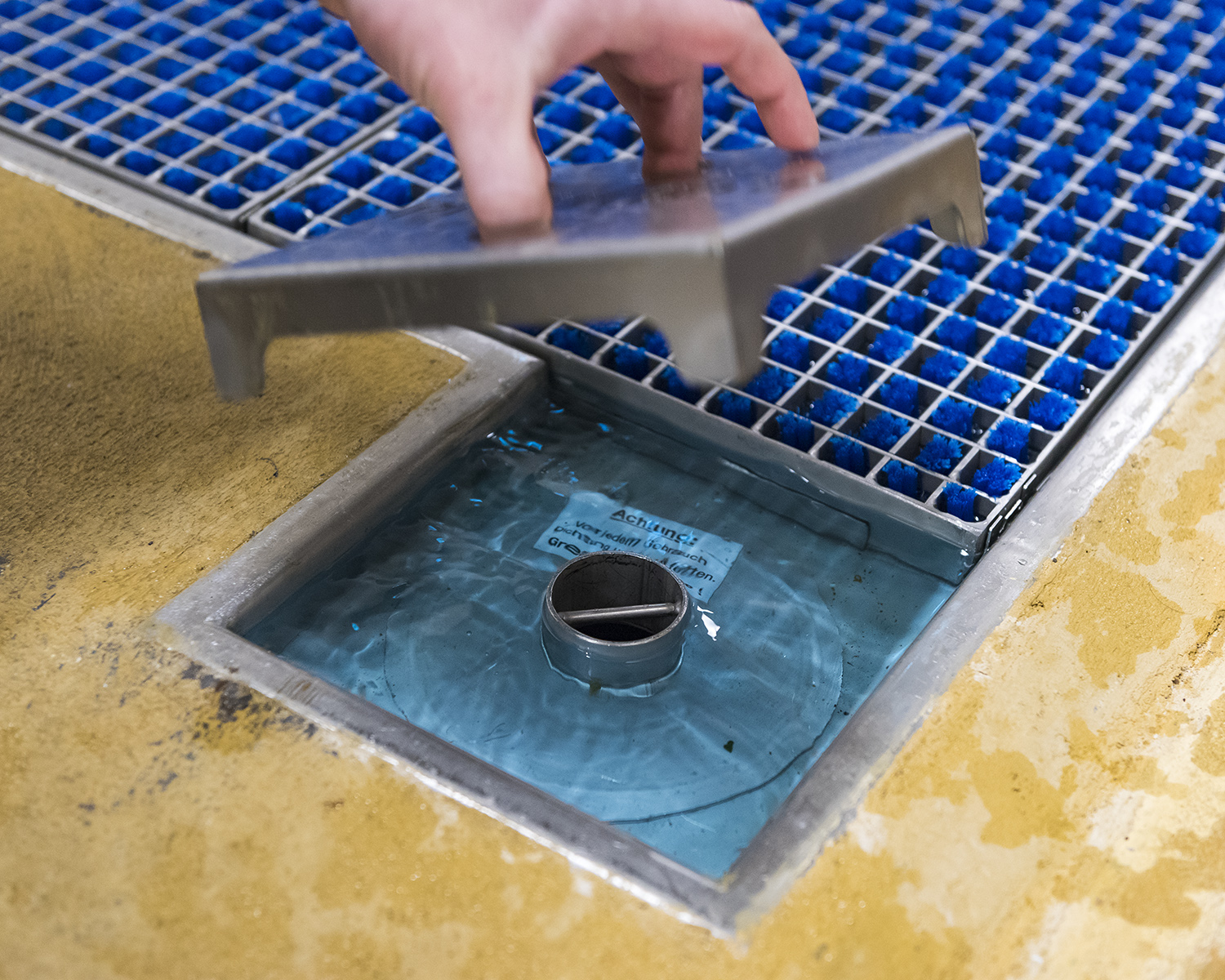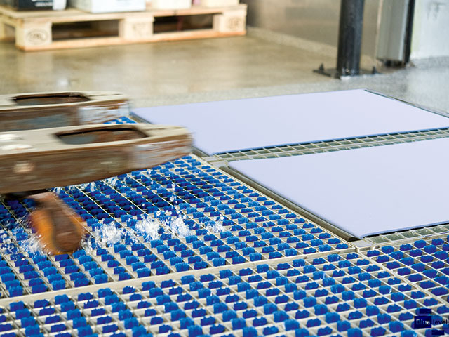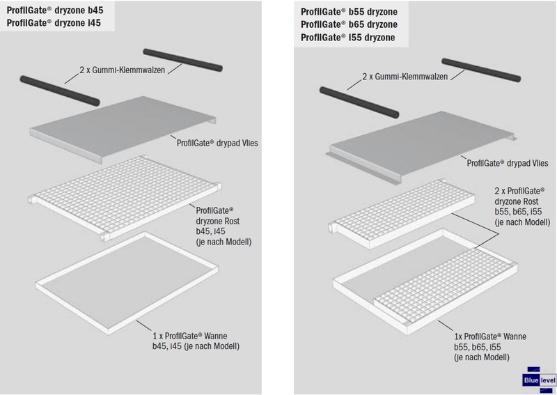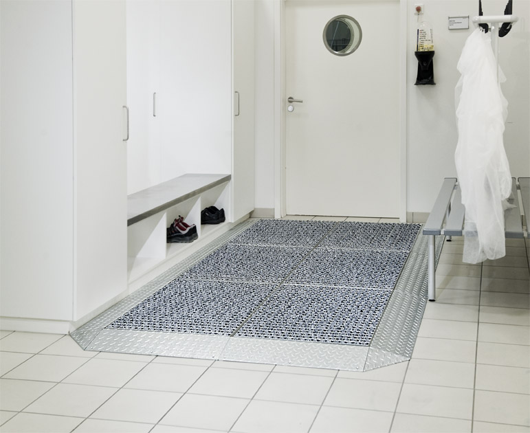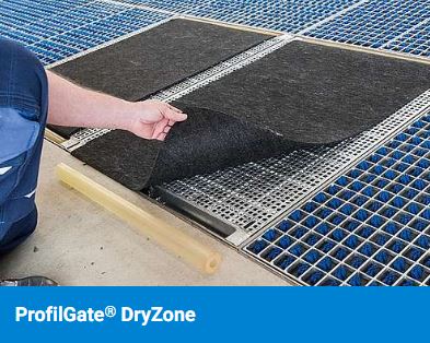 DryZone is often used in areas where bringing in moisture is undesirable or where preventing accidents and maintaining workplace safety is a top priority. DryZone is available with hot-dipped or stainless steel grating, allowing it to be used in combination with all other ProfilGate models. The special grating is covered with the unique DryPad – a heavy-duty non-woven material that is easily and securely fixed to the grating using two rubber pinch rolls. It absorbs liquids when it comes into contact with shoes/vehicles, including water, emulsion and oils.