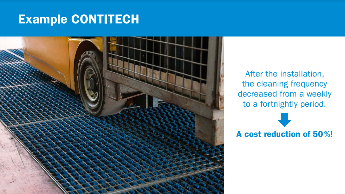 Through the ProfilGates ability to reduce the build-up of dirt and debris, the time and money spent on cleaning can be reduced.
